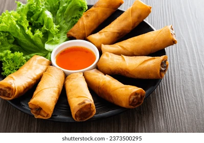 Spring roll is a traditional Chinese savory snack where a pastry sheet is filled with vegetables, rolled & fried. | |